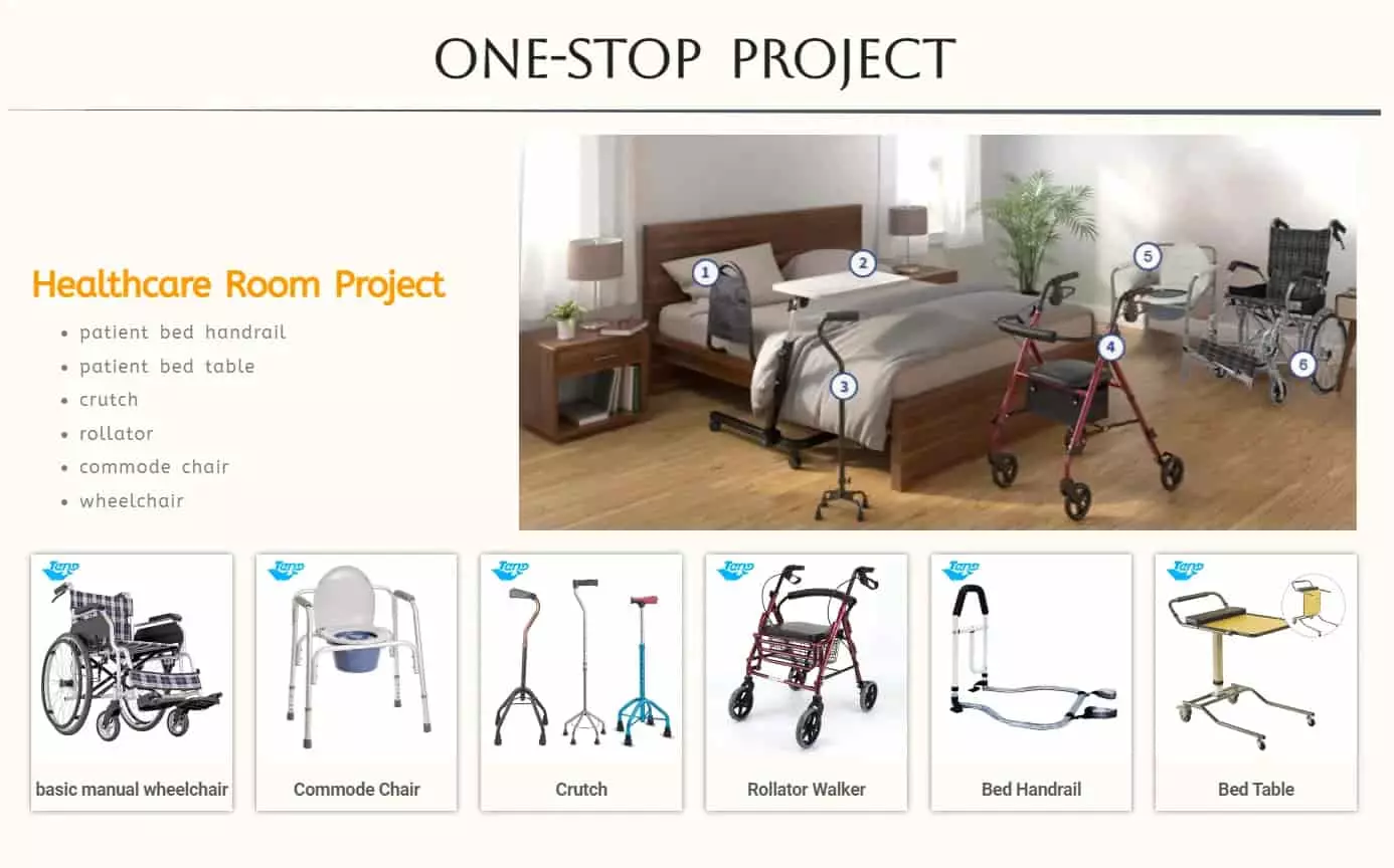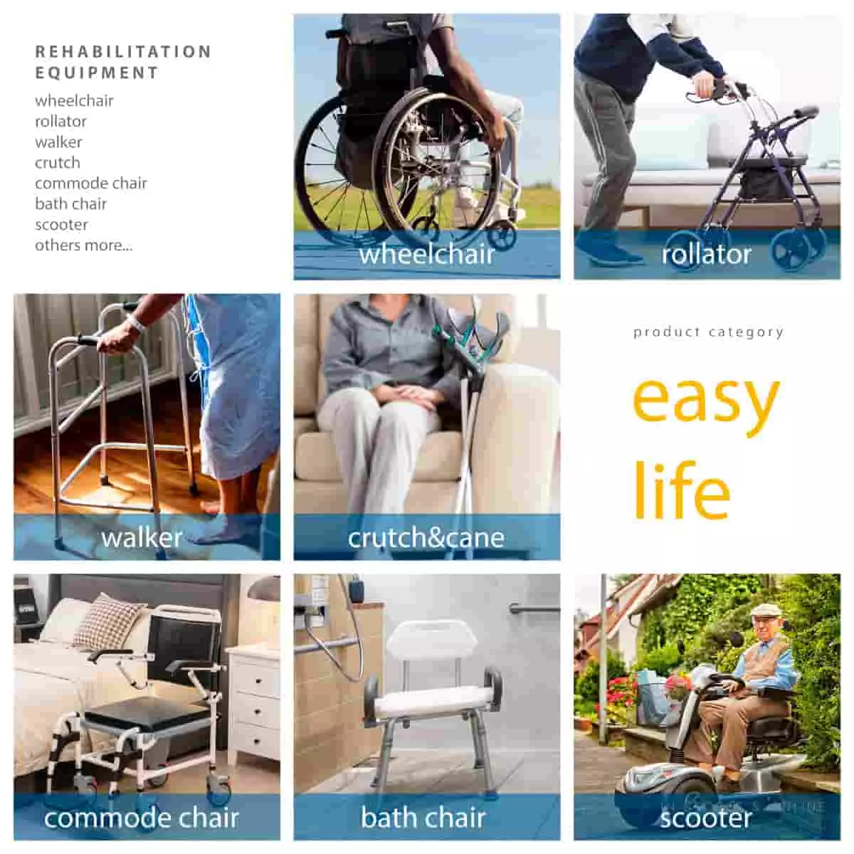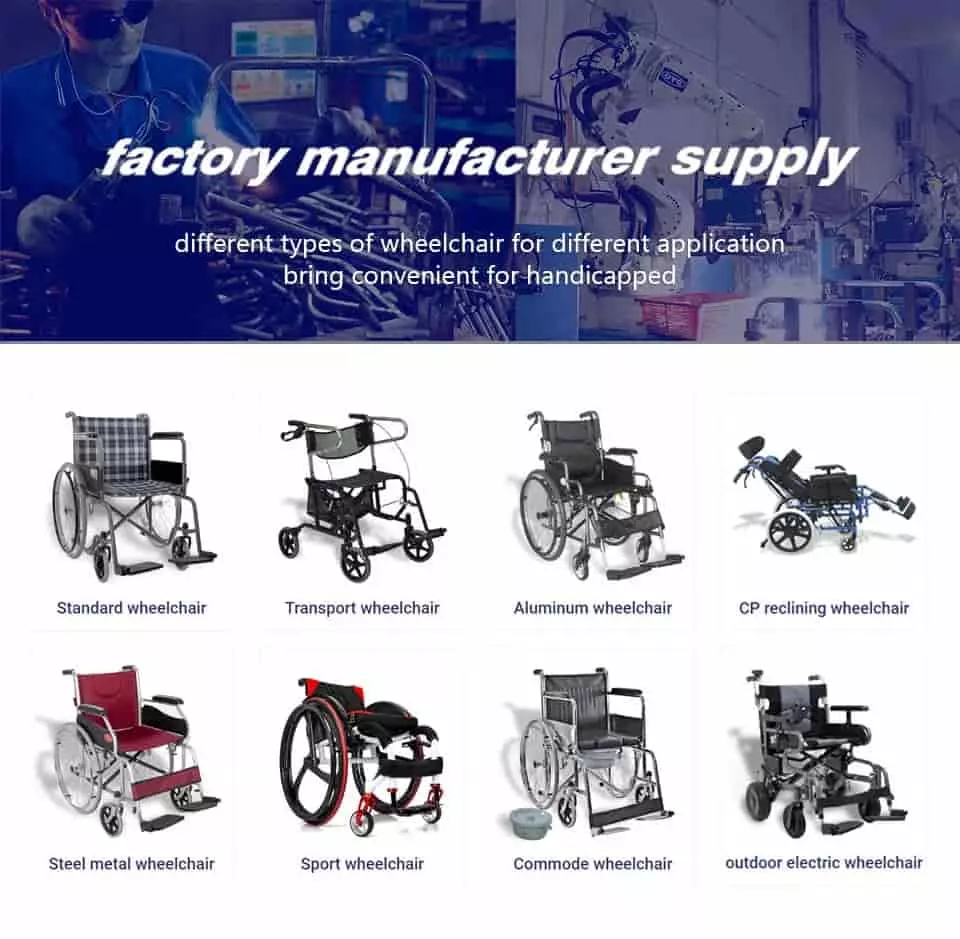 снабдува Производи OEM & ODM, како нас Sтел инвалидска количка, Алуминиумска инвалидска количка, Пинвалидска количка, Валкер, Цруч, Вокер Ролаторс, Commode стол, Стол за туширање,болнички кревет, скутер, робот и други на медицинска опрема за рехабилитација,